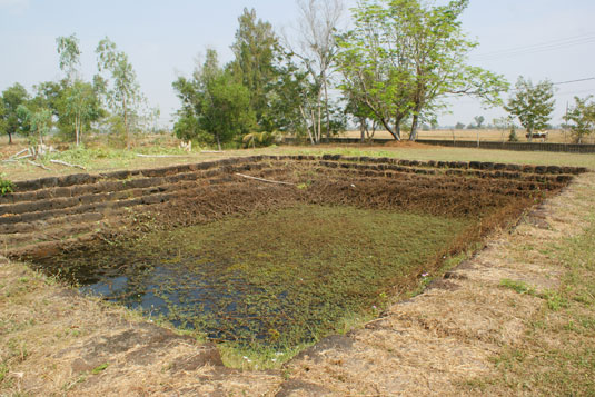 กำแพงศิลาแลงมีโคปุระหรือซุ้มประตูด้านทิศตะวันออก และบารายหรือสระน้ำ