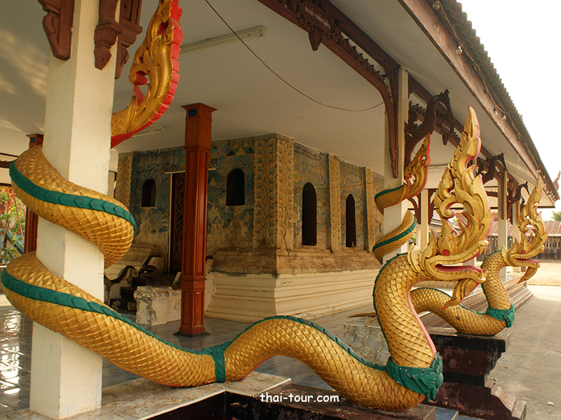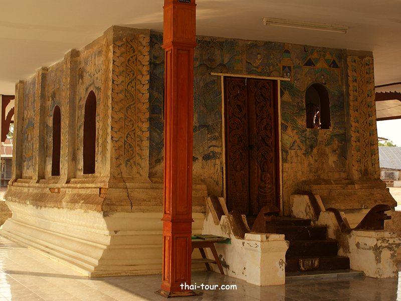 เป็นเจ้าอาวาส ผนังโบสถ์มีฮูปแต้มที่ผนังด้านนอก