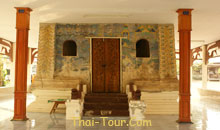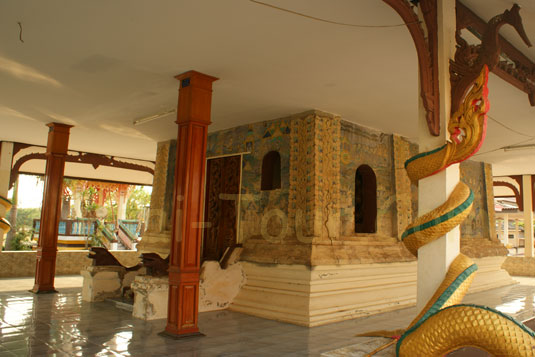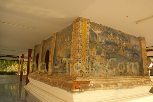 ปัจจุบันได้รับการบูรณะโดยสร้างหลังคาใหม่คลุมฮูปแต้มไว้ |