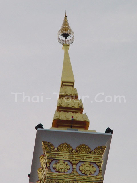 แล้วจึงถึงองค์พระสถูป เบื้องบนยอดพระธาตุหุ้มทองคำประดับพลอยสวยงามมาก