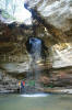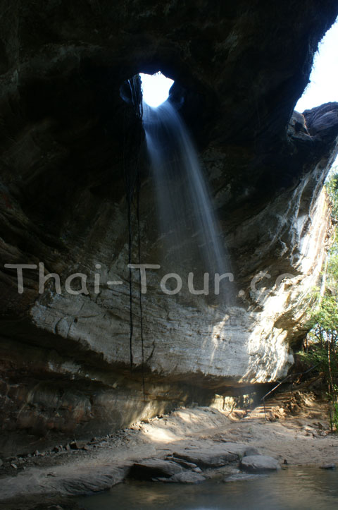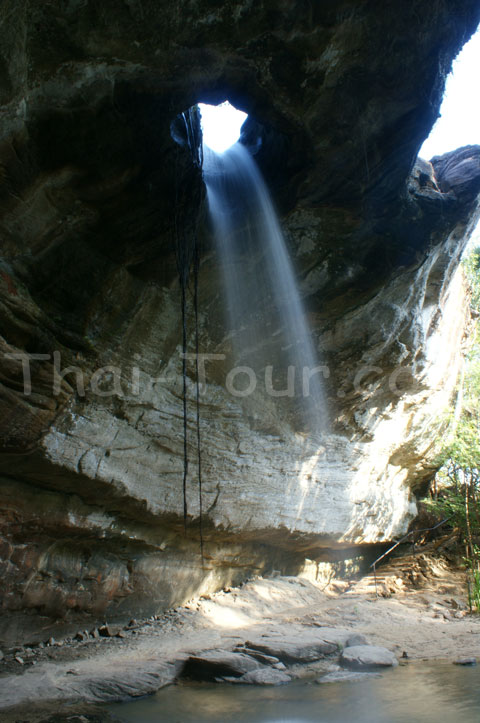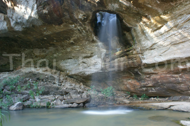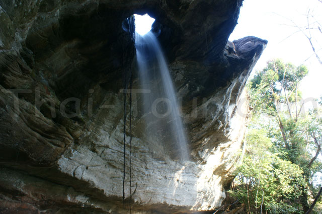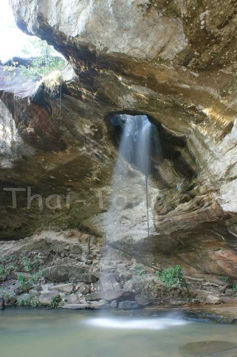 เกิดจากลำห้วยท่าโลงไหลตกลงจากเพิงหน้าผาเป็นช่องโพรงอันเกิดจากการกัดเซาะของน้ำตามธรรมชาติ