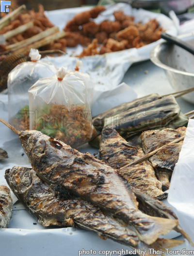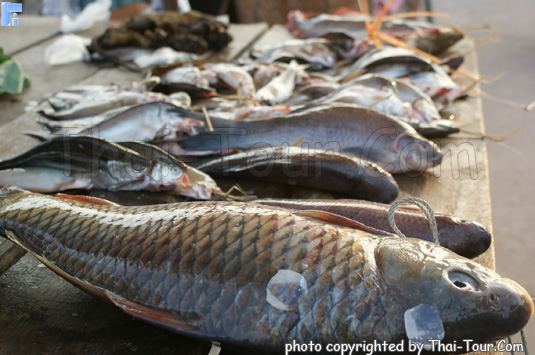 ผลผลิตที่นำมาขายได้แก่ ปลาต่างๆ เช่น