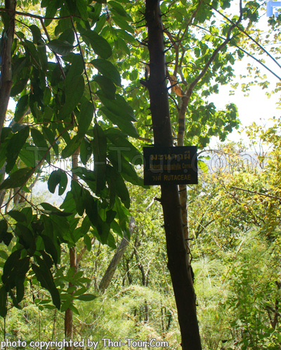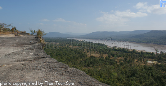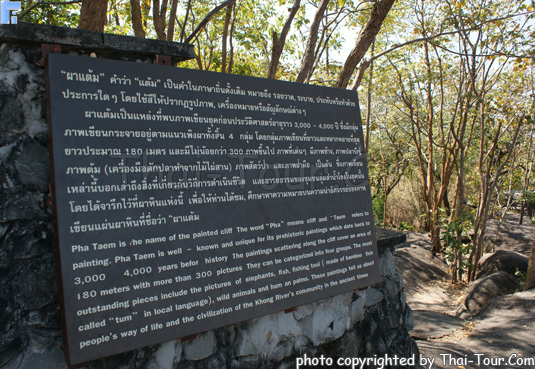 ต้องระวังหินหล่น เนื่องจากนักท่องเที่ยวที่อยู่ข้างบน ชอบปาหินตรงหน้าผาขามและผาแต้ม จึงมีป้ายเตือนนักท่องเที่ยวที่เดินอยู่ข้างล่าง