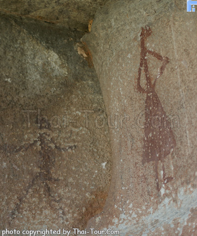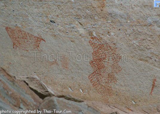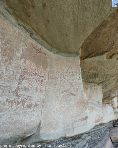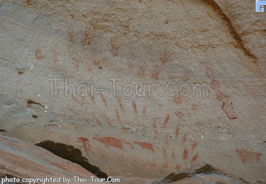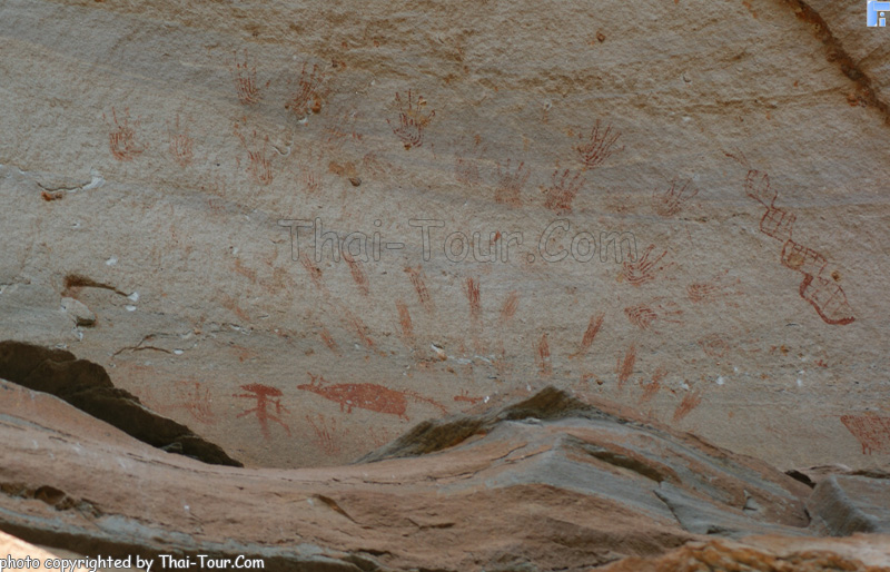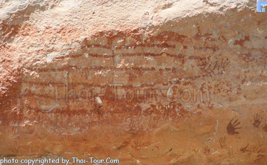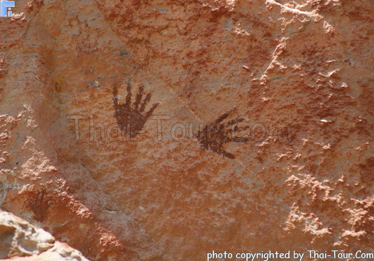 และการทำรูปรอยลงในเนื้อหินลักษณะเด่นของกลุ่มภาพเขียนสีที่ผาแต้มนี้จะเป็นภาพของฝ่ามือมนุษย์