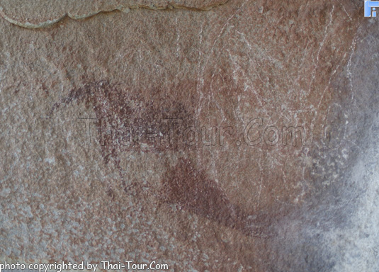 ภาพปลา ภาพสัตว์ 4 เท้า ที่ค่อนข้างเลือน จำนวน 1 ตัว คือ ภาพช้าง