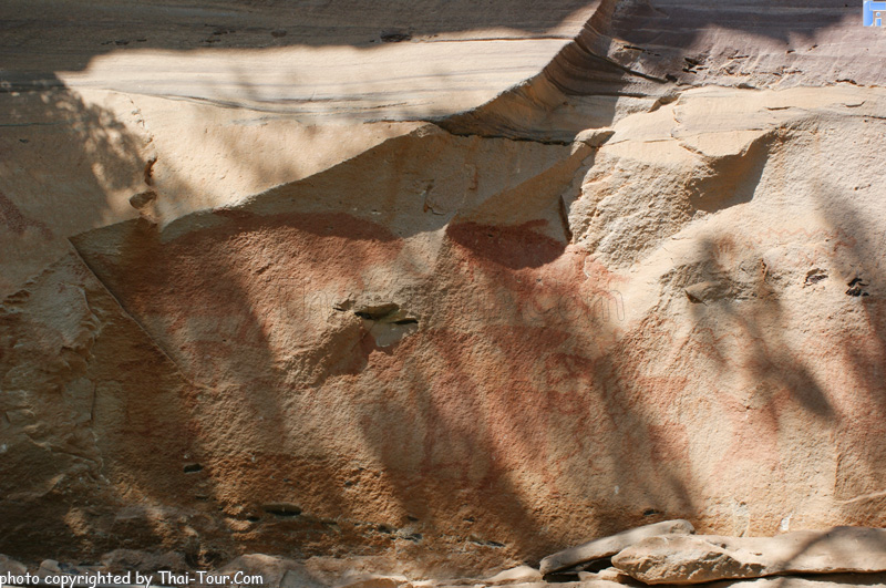 เป็นภาพเขียนสีกลุ่มที่ใหญ่อยู่ห่างจากเขียนกลุ่มผาขาม 300 เมตร