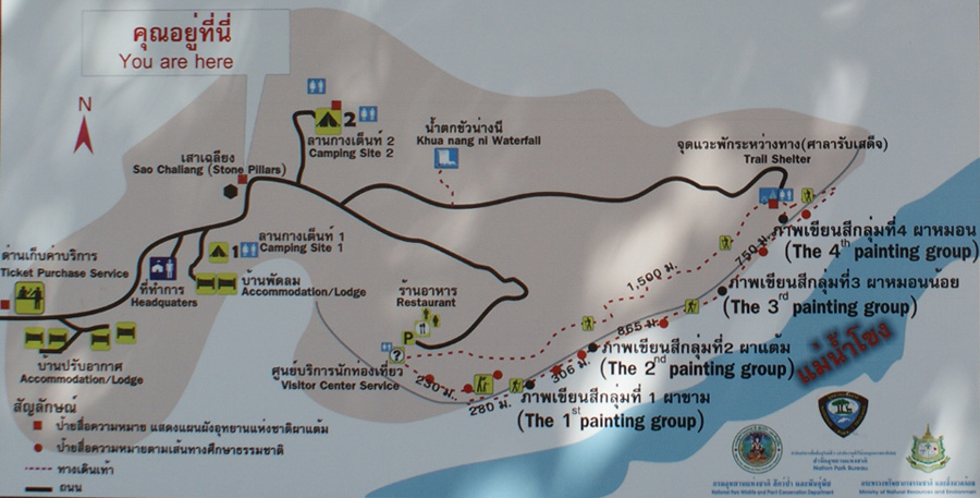 เราสามารถของแผนที่เดินเท้าไปชมภาพเขียนสีโบราณได้