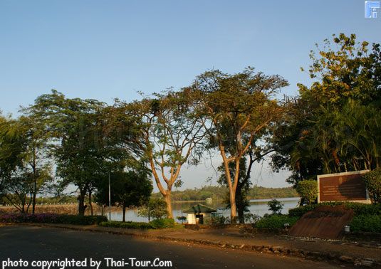 บริเวณริม ทะเลสาบ มีสวนสิรินธร ปลูกไม้ดอกไม้ประดับ