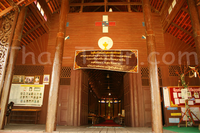 ยาว 57 เมตร จัดเป็นโบสถ์ไม้ที่ใหญ่ที่สุด ในประเทศไทย