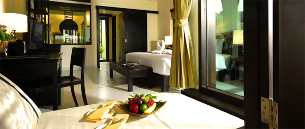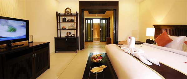 villa with 3 suites featuring living room, one king-sized bedroom and