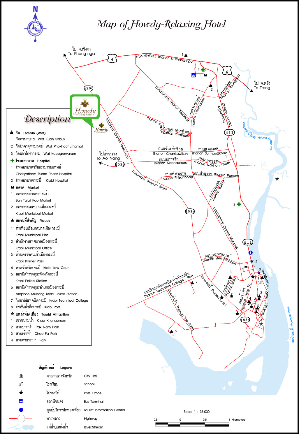 The hotel is situated conveniently at the center of Krabi Town, the