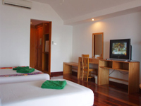 materials and equipped with air conditioning, cable TV, fridge, safety box,