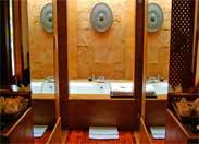bathrooms with plunge bathtubs, separate showers and toilettes, his and