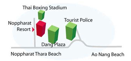 From Krabi International Airport Take Highway 4 (NW) and turn left to
