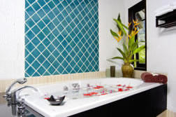 -  Bathroom with Jacuzzi and outside "Balinese-style" shower.