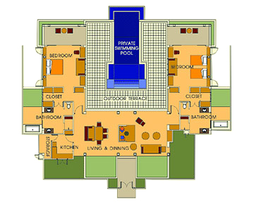 The Pool Villas One, Two & Three Bedrooms are situated some 60 meters