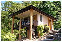 Another great option which is a bungalow with privacy fan. It is a cute hut only a few minutes up to the hill. panorama vision from room balcony. Touching an atmosphere of the greenery mountain, crystal sea water, white sand and quiet beach and the twilight sun set. Each bungalow features amenities including fan, closet, double and twin bed, bathroom inside with shower.