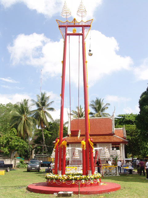 โดยจำลองแบบมาจากเสาชิงช้าในกรุงเทพฯ แต่มีขนาดเล็กกว่า และ