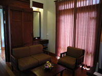 Khaolak Bhandari Resort offers 77 rooms. Every room decorated in Thai Classical style wooden furnishing and features Air conditioning, Mini-bar, I.D.D. International Telephone, Satellite Channel and Movie, In Room Safety Box, Living Corners, Tea/Coffee set, Bathrobe, Slippers and Umbrellas. The bathrooms separate toilet, Bathtub and hot & cold shower enclosure with all the amenities and hair dryer.