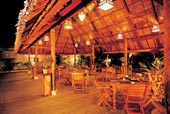 choose to sit inside under the palm roof, sala-style, or outside on the