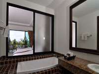 of our villa has introduced tropical garden into bathroom with divided cozy