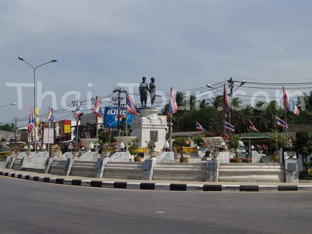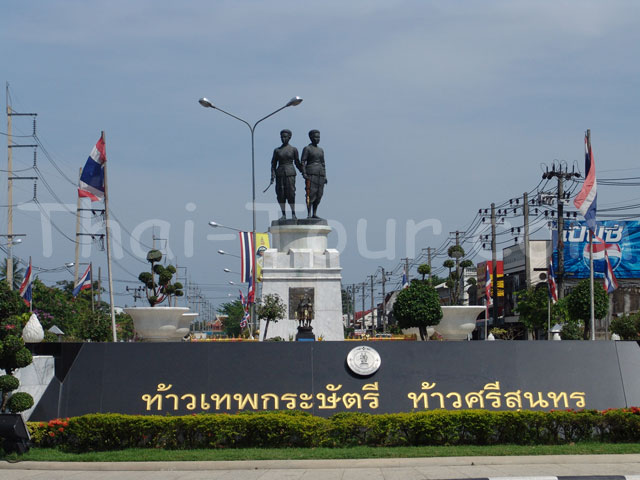 อนุสาวรีย์ท้าวเทพกษัตรีย์และท้าวศรีสุนทร ตั้งอยู่ที่สี่แยกท่าเรือ เขตอำเภอถลาง ก่อนถึงตัวเมืองภูเก็ต 12 กม.