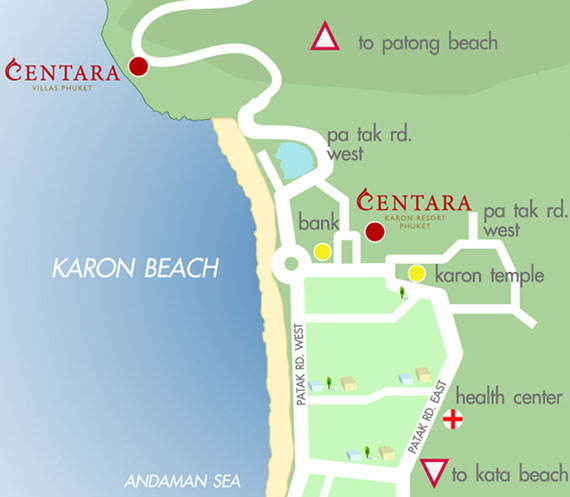 Centara Karon Resort, Phuket, located on the west coast of Phuket island and 9.5 miles away from Phuket town, is a scenic 45 minute drive from Phuket International Airport and in the centre of the popular Karon resort. The beach is a gentle 3 minute walk from the resort. Centara Karon Resort, Phuket benefits from a backdrop of tropical vegetation and an extensive range of shopping and dining outlets within the local area.
