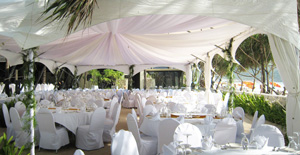 Enjoy elegant dining under the stars or under a beautiful thatched roof in