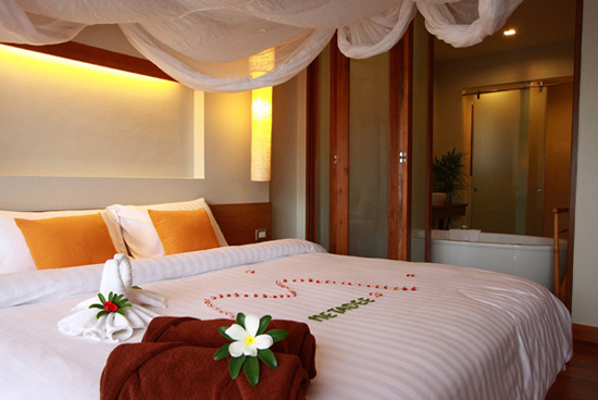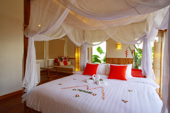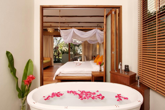 offers 76 guestrooms and villas in a tropical garden setting surrounded by a