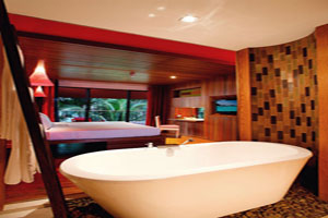 outdoor bathtub and Jacuzzi right on the balcony of this room type.
