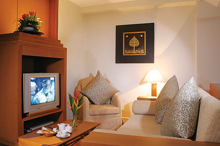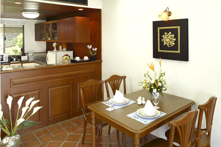 At Kantary Bay, every room is a suite; the junior suite, the full suite and the family suite. Each newly renovated suite has its own living and dining areas, a small but complete pantry/kitchen and a private balcony. Rooms are tastefully decorated, bright and inviting with terra cotta tiles, wooden floors, wrought iron, rattan, teak and beautiful fabrics and rugs.