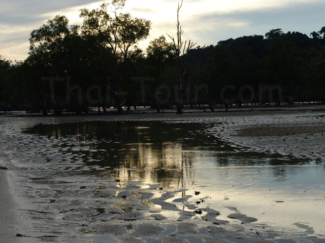 ทิศใต้ของอ่าว สุดหาดเป็นป่าชายเลน