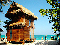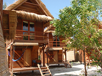 bungalow close to beach. The bedroom upstairs has a queen size double bed