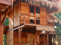 and mosquito net. Large balcony has 2 hammocks, a table and cushions. From