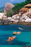 Jansom Bay where is one of Koh Tao's most beautiful and private beaches. It offers a spectular view of crystal-clear, emerald green waters filled with rich marine life; soft powder sand laced with coconut trees; and magnificent rocks with interesting formations. This beach will redefine your definition of "tropical paradise."