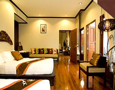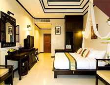 The three superior rooms are located on the first floor of main hotel building surrounded by splendid natural settings of unspoiled tropical garden with a mini waterfall pouring from an ancient architectural Thai style painting that can awake your hidden senses of relaxation.