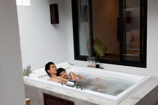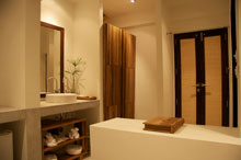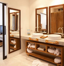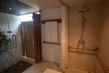 One Outdoor Shower and One Bathroom with Bathing Bench