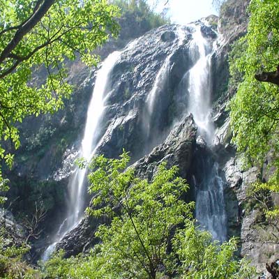 น้ำตกคลองลาน เกิดจากเทือกเขาขุนคลองลาน ซึ่งมียอดสูง 1,439 เมตร จากระดับน้ำทะเล เหนือหน้าผาน้ำตกเป็นที่ราบกว้าง ในฤดูฝนสายน้ำจะไหลจากลำห้วยต่าง ๆ ประมาณ 5 สาย ลงสู่แอ่งน้ำกลางหุบเขา เกิดเป็นวังน้ำลึกและลำน้ำยาวประมาณ 3 กิโลเมตร แล้วไหลผ่านหน้าผาลงมาเป็นน้ำตกคลองลาน สูง 100 เมตร กว้างประมาณ 40 เมตร