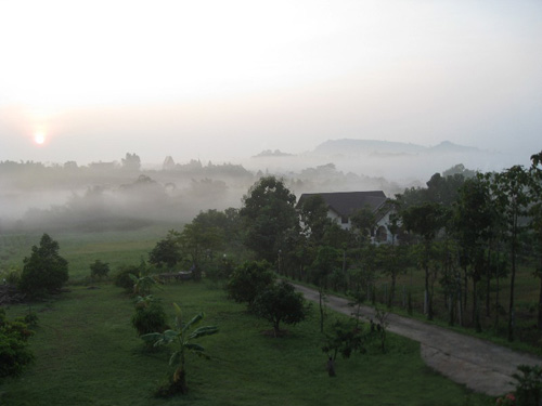 เช้าวันแรก..ถ่ายจากบนที่พัก "บ้านชมเดือน" กลางคืนได้ชมเดือนจริงๆเพราะยกพื้นสูง จนเห็นวิวสุดลูกหูลูกตา ...ที่ชอบมักๆคือละเทหมอกที่เห็นลิบๆ พี่เจ้าของรีสอร์ทบอกว่าช่วงธันวา-มกรา ลงหนากว่านี้...เดี๋ยวมาอีกรอบชัวร์ๆ