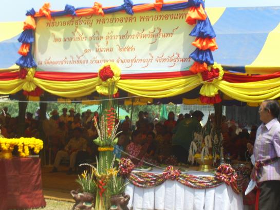 งานบายศรีสู่ขวัญช้างแฝดเมื่อวาน ที่บ้านท่าลาด ต ศรีณรงค์ อ ชุมพลบุรี จ สุริทร์