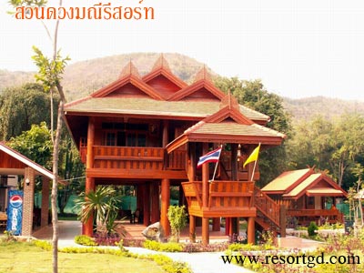 สวนดวงมณีรีสอร์ท ห้องพักแบบเรือนไม้ธรรมชาติ ท่ามกลางขุนเขา และสายน้ำ กาญจนบุรี ร