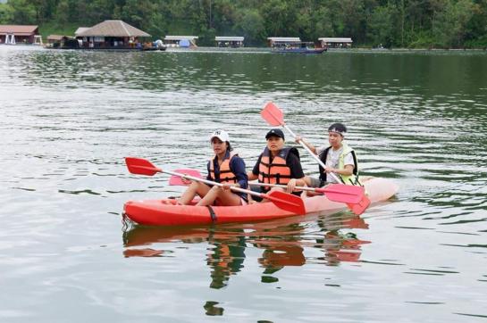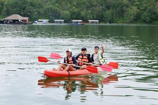 นอนแพเขื่อนศรีนครินทร์ พายเรือชมวิวหน้าที่พัก กิจกรรมล่องแพเปียกชมวิว