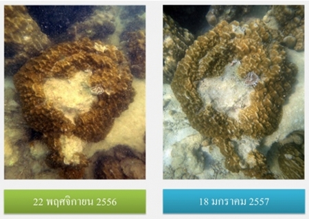 การฟื้นตัวของปะการังฟอกขาวภายหลังเหตุการณ์ ข่าวน้ำมันรั่ว ปตท ในอ่าวไทย