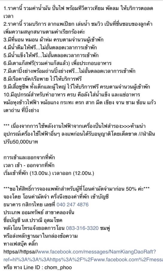 สอบถามทางเฟสบุ๊ค คลิ๊ก https://www.facebook.com/messages/NamKiangDaoRaft?ref=hl