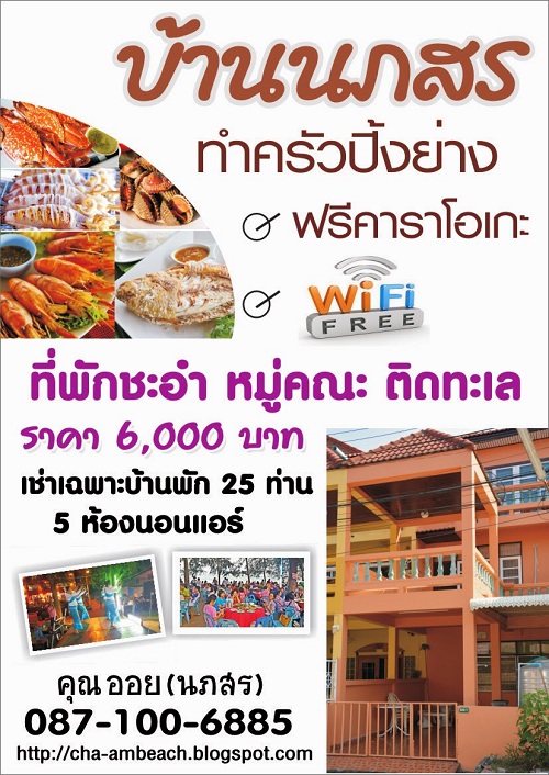 บ้านนภสรชะอำ ที่พักชะอำหมู่คณะ ทำครัวปิ้งย่างได้ 20-300ท่าน