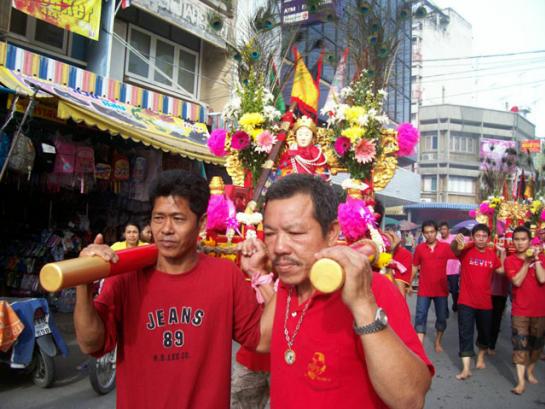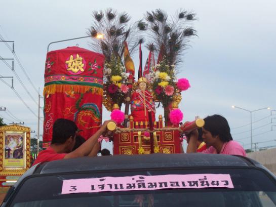 แห่เเจ้าแม่ลิ้มกอเหนี่ยว และองค์พระศักดิ์สิทธิ์ของศาลโปรดลูกหลานเนื่องในงานฉลองสมโภชวันเกิด วันที่ 24 เดือน7 นับตามปฏิทินจีน (ศาลเจ้าแม่ลิ้มกอเหนี่ยว สี่แยกบางแพ ถ.เพชรเกษม กม.81 ต.วังเย็น อ.บางแพ จ.ราชบุรี) www.limkoniau.com