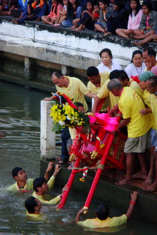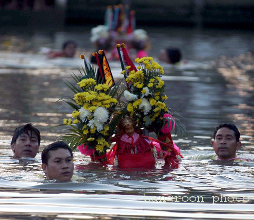 องค์เจ้าแม่ทำพิธีลุยน้ำ ในแม่น้ำปัตตานี ข้างสะพานเดชานุชิด