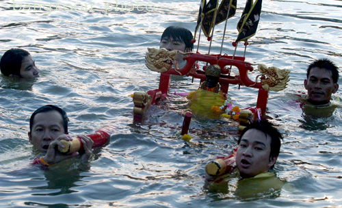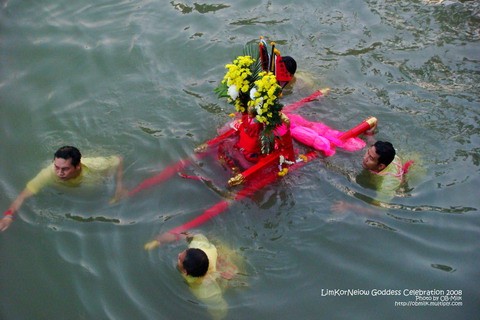 พิธีลุยน้ำ เนื่องใน "ฉลองสมโภชวันเกิดเจ้าแม่ลิ้มกอเหนี่ยว" ที่ศาลเจ้าแม่ลิ้มกอเหนี่ยว สี่แยกบางแพ (www.limkoniau.com) วันที่ 24 สิงหาคม 2551(24 เดือน 7 นับตามปฏิทินจีน)