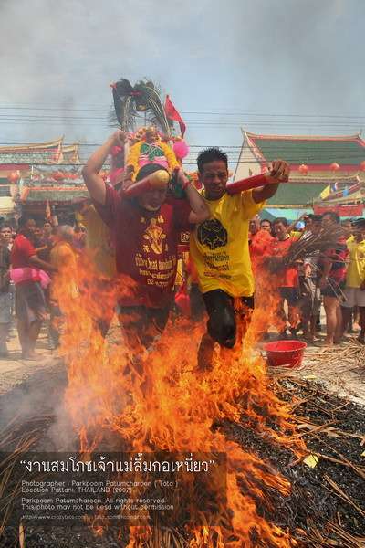 ภาพเจ้าแม่ลิ้มกอเหนียวทำพิธีลุยไฟอันศักดิ์สิทธิ ณ ศาลเจ้าเล่งจูเกียง จังหวัดปัตตานี
