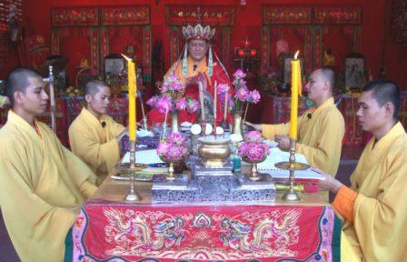 พระหมอ(โจวซือกง)พระประธานในศาลเจ้าเล่งจูเกียงในวันทำพิธีเบิกเนตร